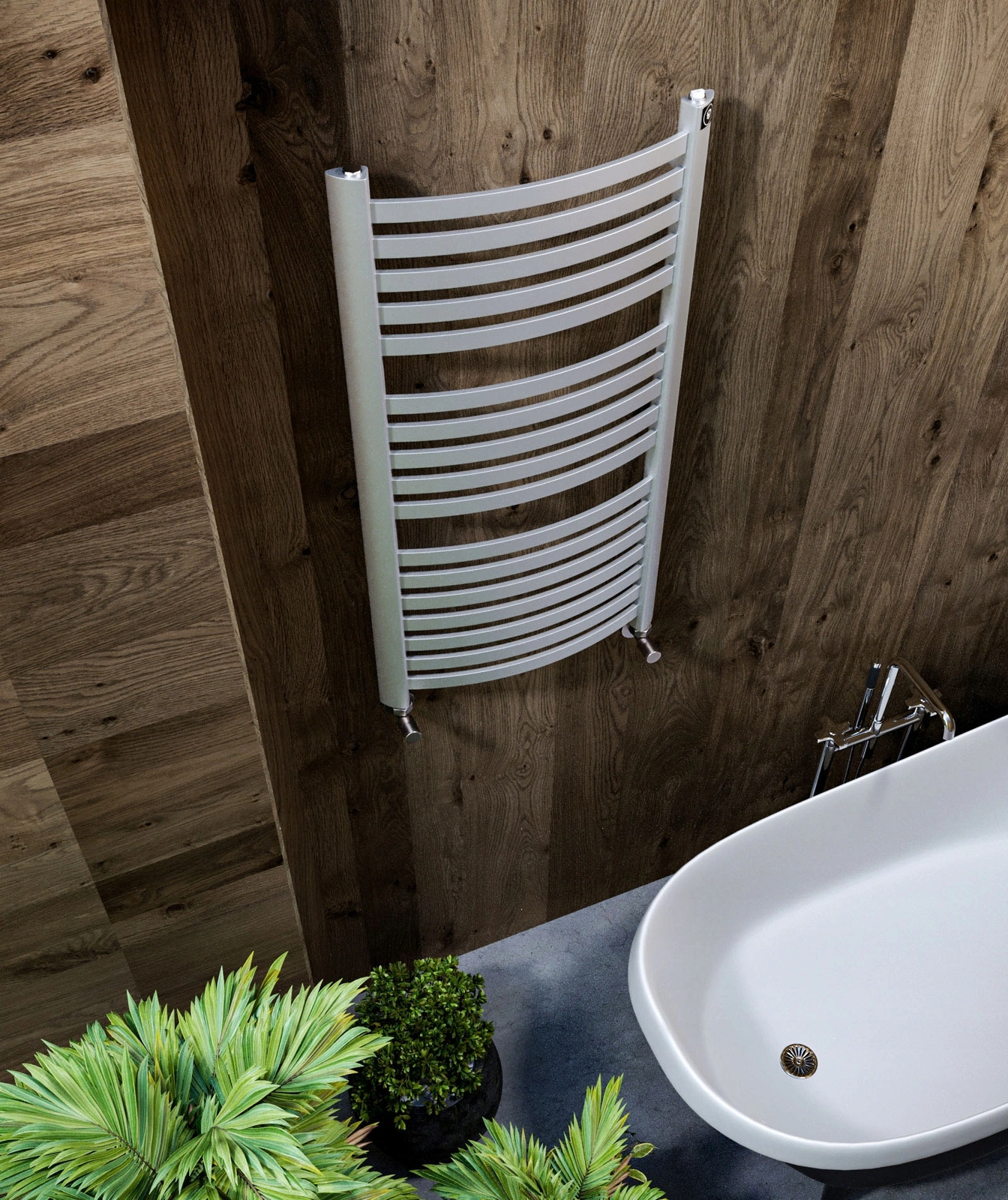 Grzejnik łazienkowy wykonany z dwóch kolektorów pionowych o przekroju trójkątnym i profilu poziomym, o średnicy 30mm x 10mm.
