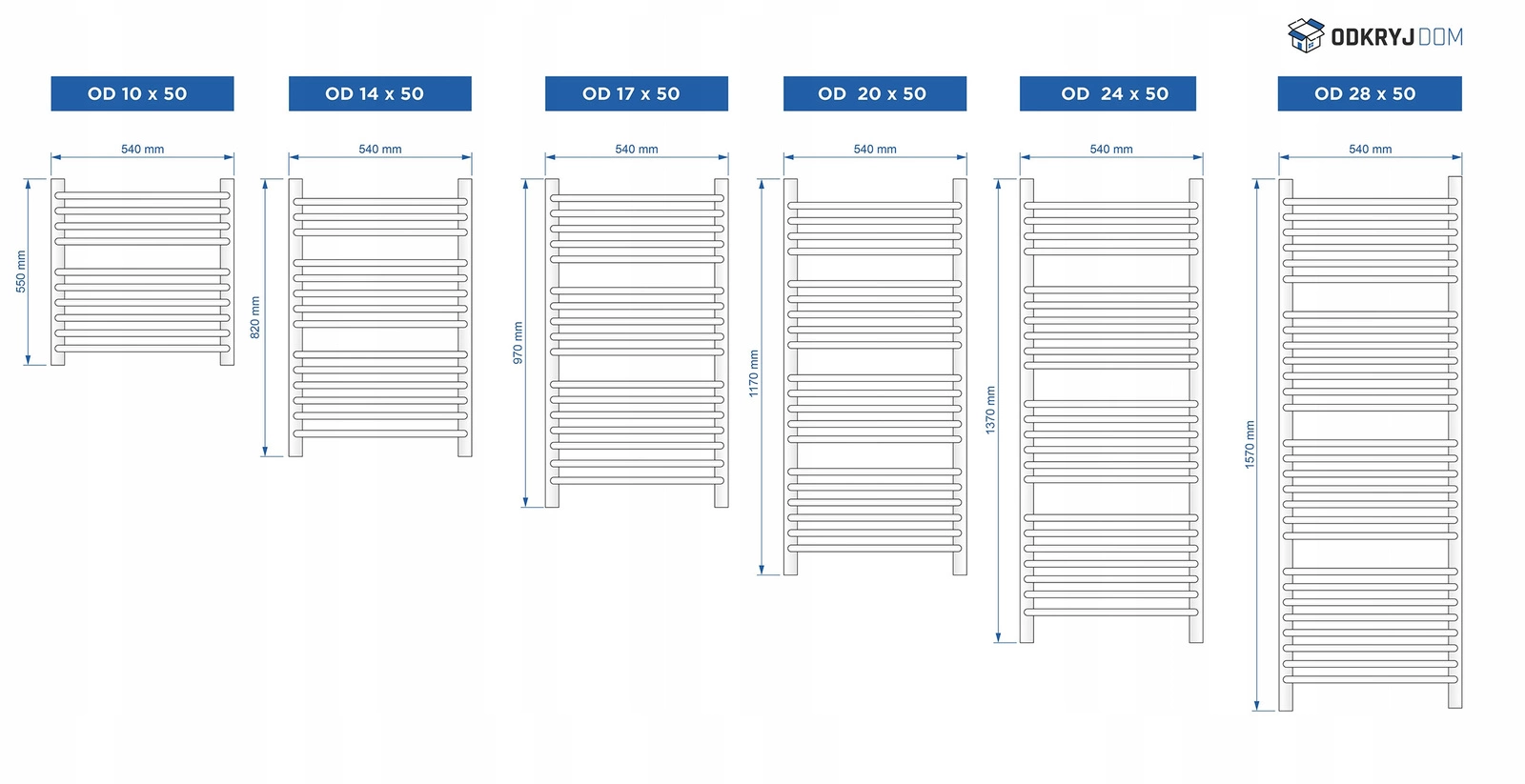 Układ żeberek każdego grzejnika zależny jest od wybranej przez państwa wielkości. Informacje przedstawione na rysunku poniżej