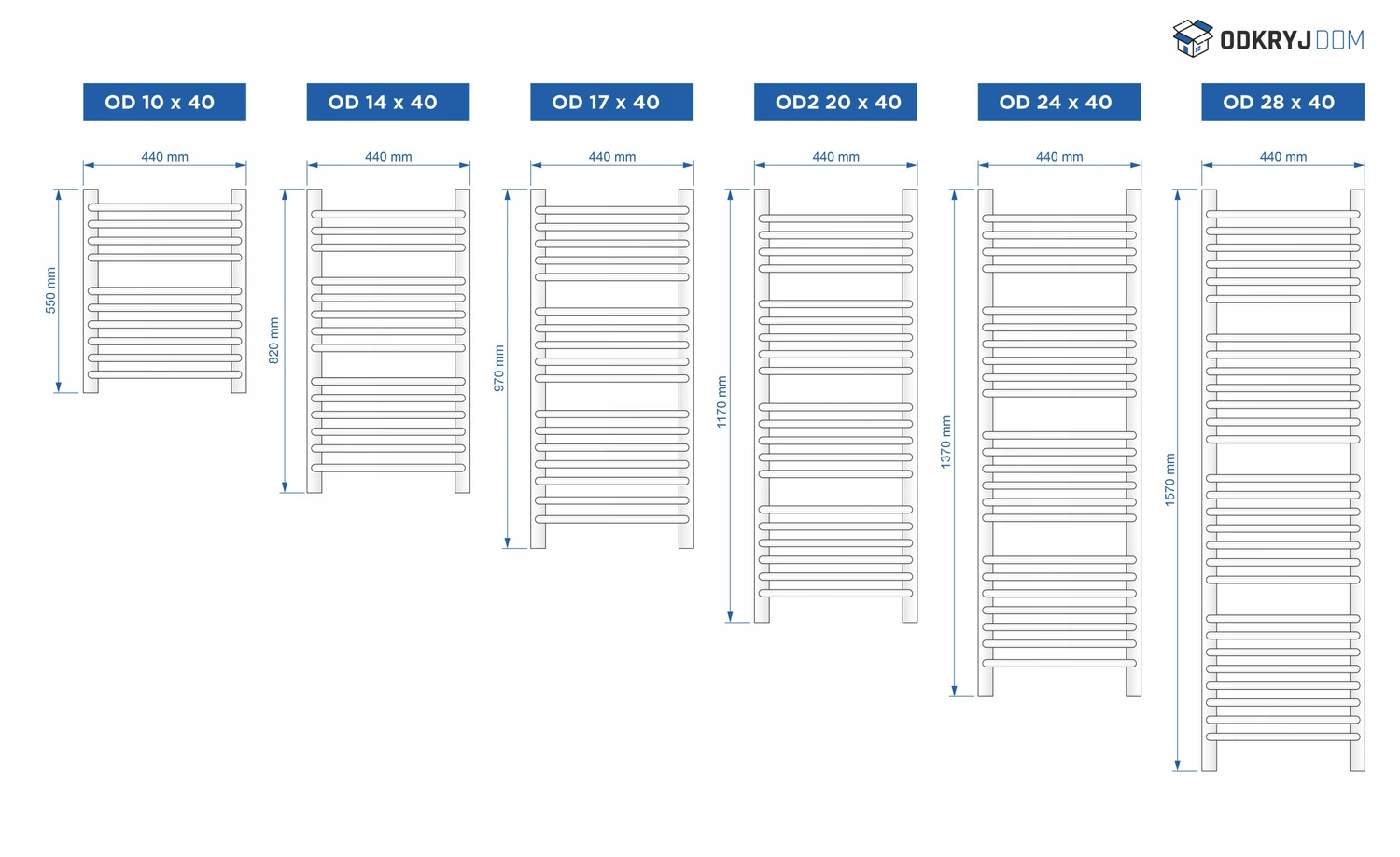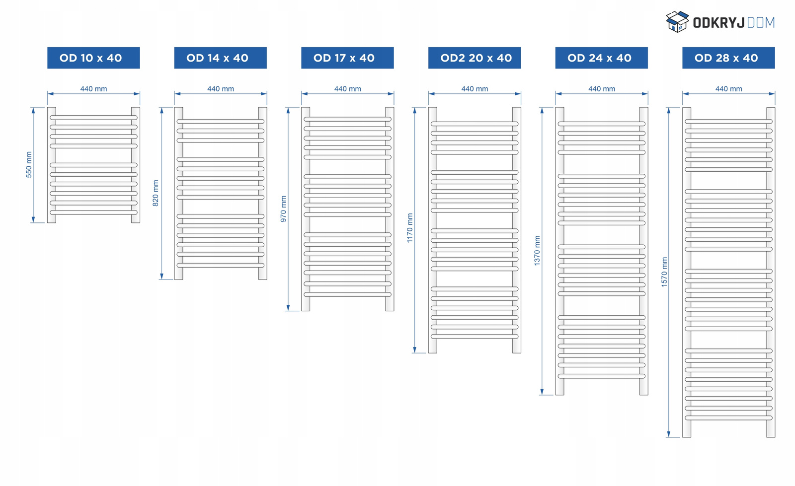 Układ żeberek każdego grzejnika zależny jest od wybranej przez państwa wielkości. Informacje przedstawione na rysunku poniżej